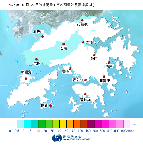 | 2025-10-26 | 11:30 | 24 | 28 | 60 | 85 | 東北風4級,間中5級。 | 低 | 大致多雲。日間短暫時間有陽光,稍後有一兩陣雨。 |